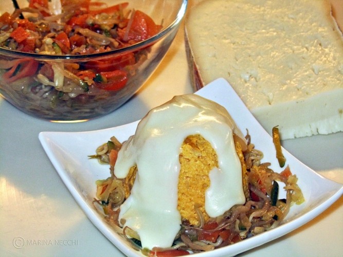 Scherzi a parte, appena cotti li ho lasciati leggermente raffreddare prima di rovesciarli sul piatto e rivestirli con il formaggio fuso.