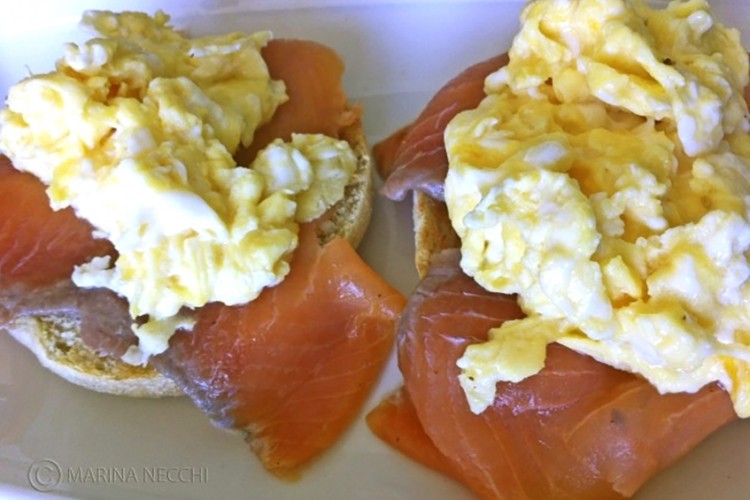 Tra le varie colazioni, in giro per il mondo, non mi era mai capitato di trovare associata questa combinazione di uova strapazzate e salmone posati delicatamente sugli scones appena sfornati.